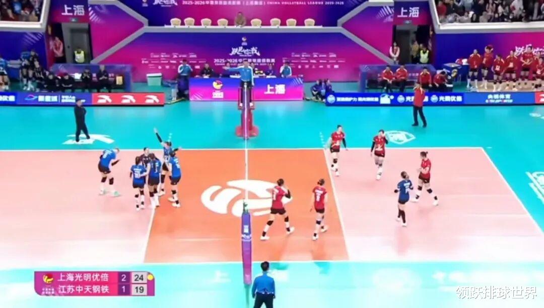 北京时间1月14日,2025-2026赛季中国女排超级联赛常规赛A级第九轮焦点战役上演,拥有两大外援的上海光明优倍女排坐镇主场,迎战号称“小国家队”的江苏中天钢铁。上海女排以3-1(22-25、25-19、25-17、25-19)完成逆转,豪取四连胜,并以8胜1负积23分的成绩暂时登上积分榜首位,卫冕冠军江苏队则吞下赛季第二败,目前7胜2负积20分暂居第二。