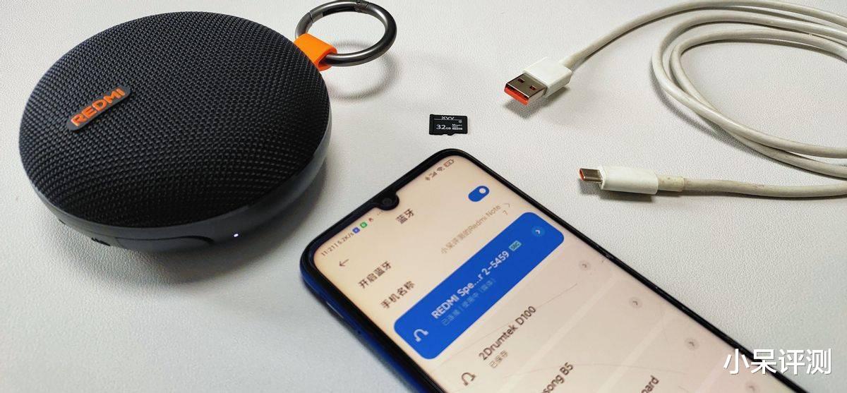 REDMI蓝牙音箱2 同时支持有线+蓝牙+microSD卡共三种模式,蓝牙模式顾名思义通过连接蓝牙设备,进行音频播放,像我们常见的手机、平板和笔记本电脑等等;有线模式则主要用于连接笔记本或台式电脑,使用线材接入REDMI蓝牙音箱2 的Type-c接口,充当电脑音箱使用,外出临时讲解PPT等办公场景更多一点;最后就是插入microSD卡模式,最大支持512GB,无需网络和手机等设备,光靠音箱就可以满足音频的播放,三种模式依靠长按蓝牙键依次循环切换,不挑场景户外室内依然硬核。