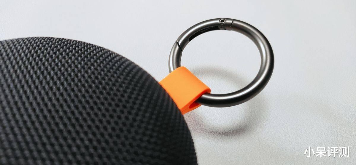 造型方面延续饼状设计,和发声单元贴合度更高,拿在手里质感十足,随音箱附赠的金属扣,出行时挂在单车或背包上,便携随行无负担。上下两部分之间采用装饰用高亮腰线,既分割了区域又起到一定装饰作用。值得分享的是顶部的编制网布,大大提升音箱防磕耐撞性能同时,让音箱更好打理,日常沾到表面的灰尘脏污一擦即净,对于长时间户外场景使用真是太有必要了。