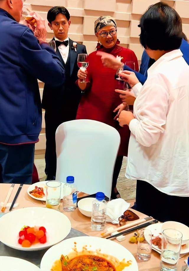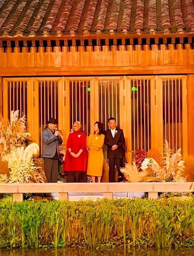 刘欢和妻子卢璐也难得同框,卢璐一身红衣,喜气洋洋。这场婚礼,可是让刘欢夫妇放下了心里的一块大石头。