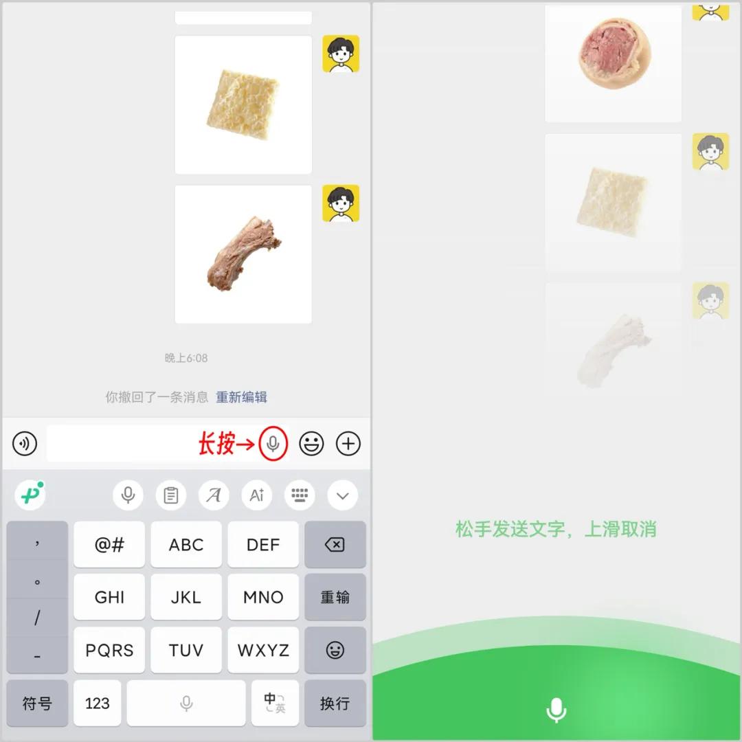 聊天输入框中的“话筒”按钮已不再仅限于单击触发,现在长按该按钮还可以直接进行语音转写,说完话松手就能自动发送。