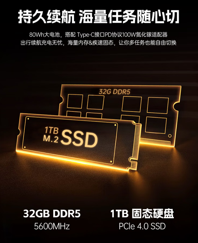 海量存储空间:直接标配32GB内存和1TB固态硬盘,无论是大型项目文件还是海量资料,都能轻松存储和快速调用,无需担心空间不足。