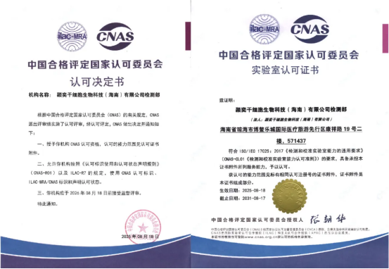 近期,颖奕国际医疗中心再添重磅喜讯!其旗下干细胞生物科技有限公司检测部成功获得CNAS实验室认可证书与CNAS实验室认可决定书,标志着该检测部的技术实力与管理水平获权威认证。