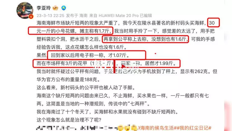 知名编辑李亚玲:我终于知道海南的缺斤少两为什么屡禁不止了