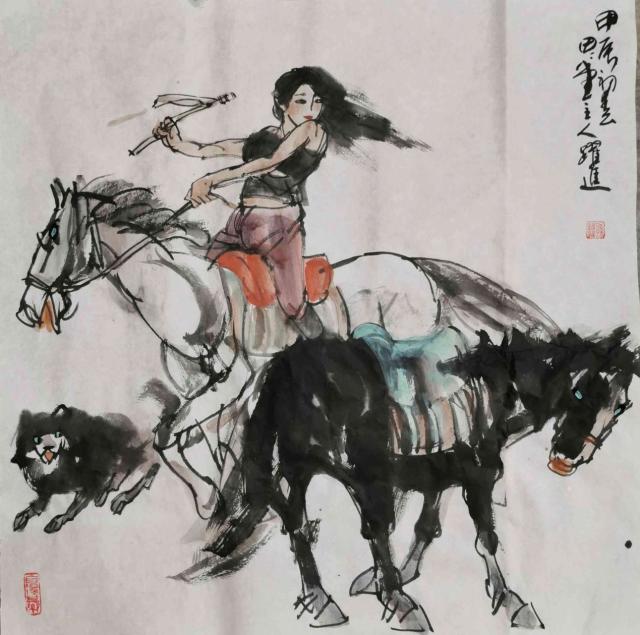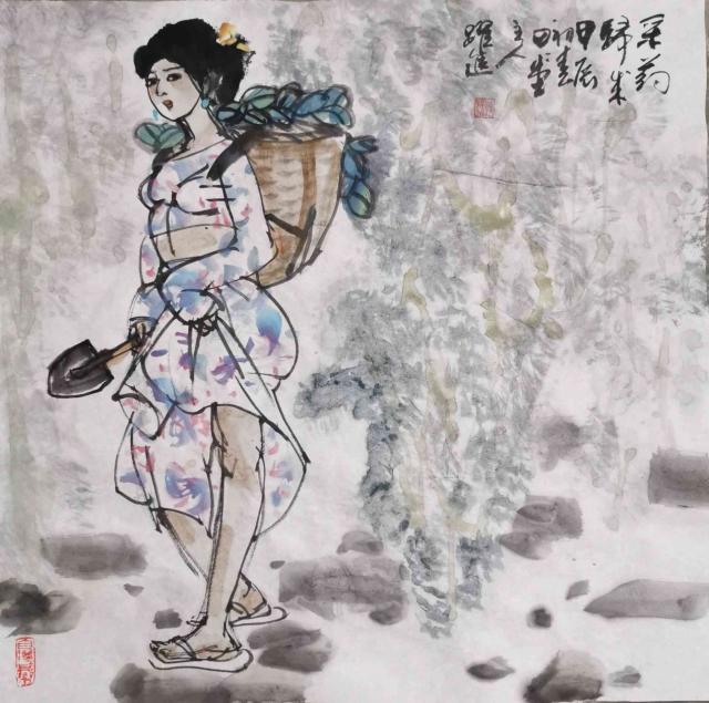 古人论丹青,讲究形神兼备,因有型而精彩,因有神而上品。当代著名画家孙跃进先生,研习写意国画人物得真经,就是一-位形神兼备传承丹青真经的大手笔。他的绘画艺术横跨人物动植两大门类,写意物象夺其精神掠其体貌,形神兼成,令人赏心悦目,显示出妙有华姿的精神品貌。当代画家修习中国传统绘画艺术,有诸多不同目的。不同目的,导致书画品位与收获各不相同。有的画家以画而谋生,多为匠工。有的画家以画逐名,多为俗气。还有的画家以自娱为目的,多显肤浅。唯有把丹青艺术当成修身养性的陶冶,方可以像著名画家孙跃进先生这样,收获画如其人的正宗造诣。孙跃进先生精心研习书画艺术,无俗利之逐取,无虛名之追求,亦不以绘画而谋生活,所以他的丹青修炼,完全是出于修身养性,陶冶情操的目的。目的纯粹,画风超脱。纵观他的绘画作品,无一例外,都显发着丹青无挂碍,清许质如泉的透彻与明净。他毕业于中央美术学院徐悲鸿画院研修班,有着深厚的笔墨理论涵养,所以对外师造化中得心源法则理解特别深刻,实践特别执着。观人物姿态,心穷万物之源,不但是他的艺术目标,也是一-场永无止境的丹青修行。他能沟通心源与造化的双向对流,别人熟视无睹的人物景象,可以成为他描述人物造意的心灵感触。