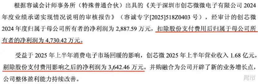 根据业绩承诺,创芯微应在2024年-2026年三年期间实现累计不低于2.2亿元归母净利润(扣除股份支付费用影响)。