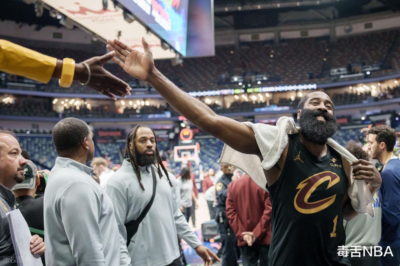 事实也确实如此,送走加兰后,骑士成功打造了哈登+米切尔的后卫双人组,这套组合的精妙之处,就在于功能互补、互不冲突。米切尔本身就是联盟顶级得分手,擅长无球跑动和持球攻坚,专注于得分就能最大化他的价值;而如今的哈登,早已不是当年那个沉迷单打、疯狂刷分的“得分机器”,而是彻底完成了转型,更偏向于串联组织,成为了球队的“大脑”。他的到来,不仅解放了米切尔,让后者不用再分心组织,还能完美适配骑士的内线群,无论是和阿伦的挡拆配合,还是给莫布利喂饼,哈登都做得游刃有余,让骑士的进攻体系变得更加流畅。