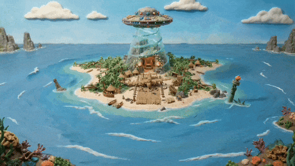 这支短片更加“抽象”,作品选用画风特别的黏土定格动画,讲述一群原始人在海岛上不断挖出可乐瓶、飞行员头盔等,决定造一架飞机的故事。