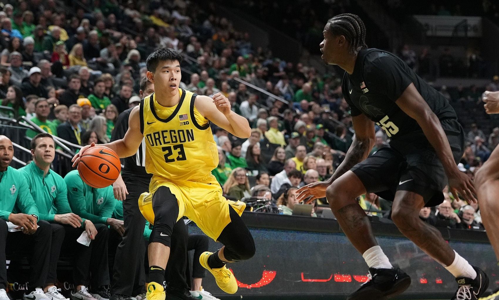 1月21日NCAA常规赛,俄勒冈大学52:68不敌密歇根州立大学,中国球员林葳首发出场23分钟,投篮5投2中,罚球2罚1中,得到7分1助攻1抢断。命中的两球全部是三分球,第一次是顶着防守球员的果断出手,第二次是利用挡拆后的出手。全场比赛林葳的出手机会并不多,俄勒冈大学主力控卫遭遇伤病,林葳后续应该还是会继续首发出战。