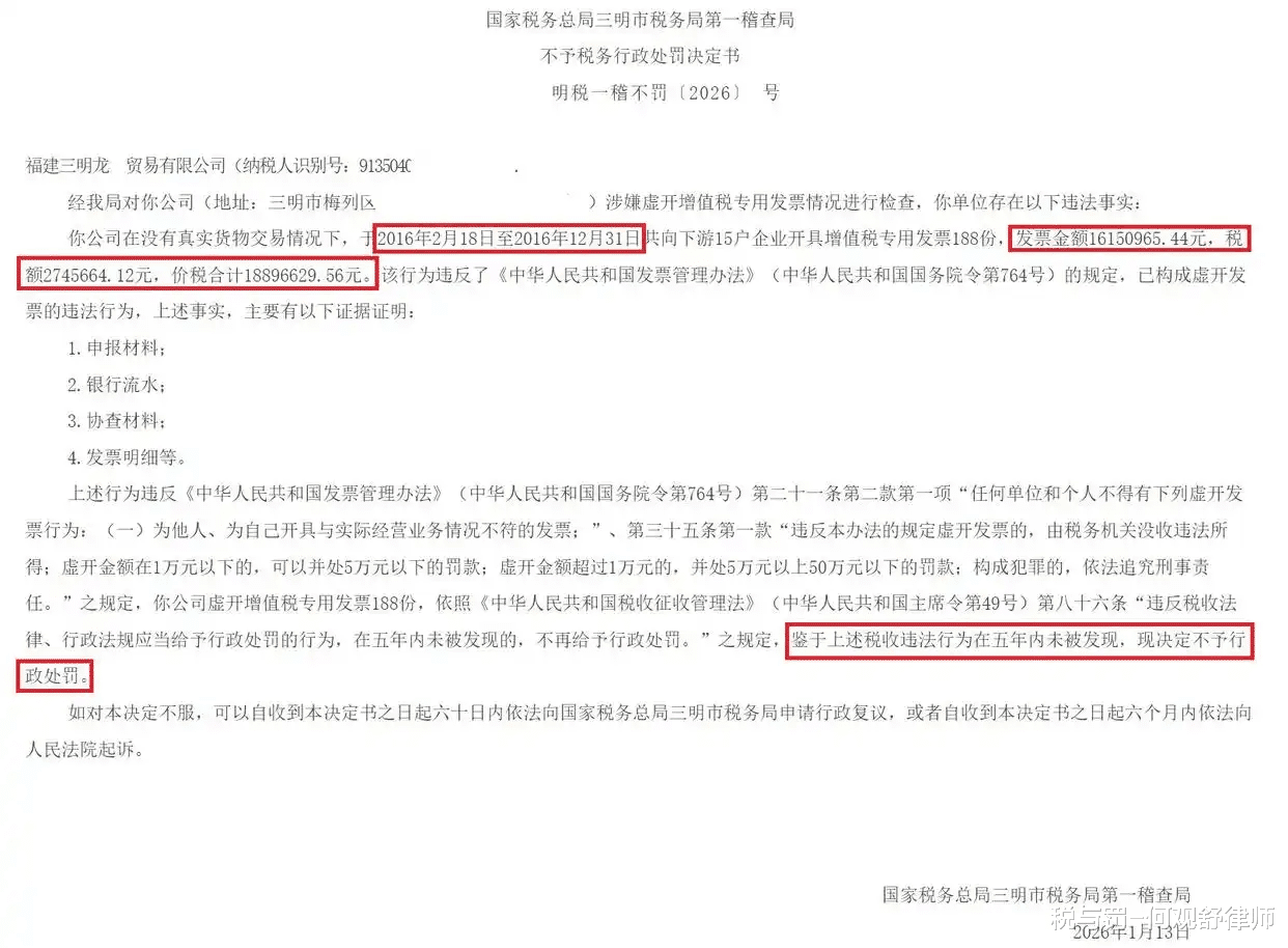 明税一稽不罚〔2026〕X号