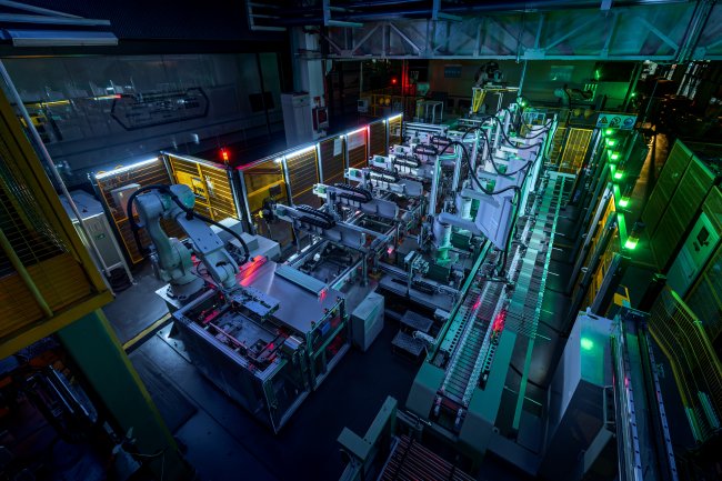 “灯塔”之光,首先照亮的是智造的精度与效率。蒸发器和冷凝器这“两器”是中央空调核心部件,海信中央空调黄岛工厂在此领域建成全球唯一的“黑灯生产车间”,通过AI视觉与机器人柔性生产,实现全工序自动化。多点焊接自动化技术将焊接不良率下降57%,物流环节首创“天车”空中即时配送系统,替代传统悬挂链方式,提高物流效率。