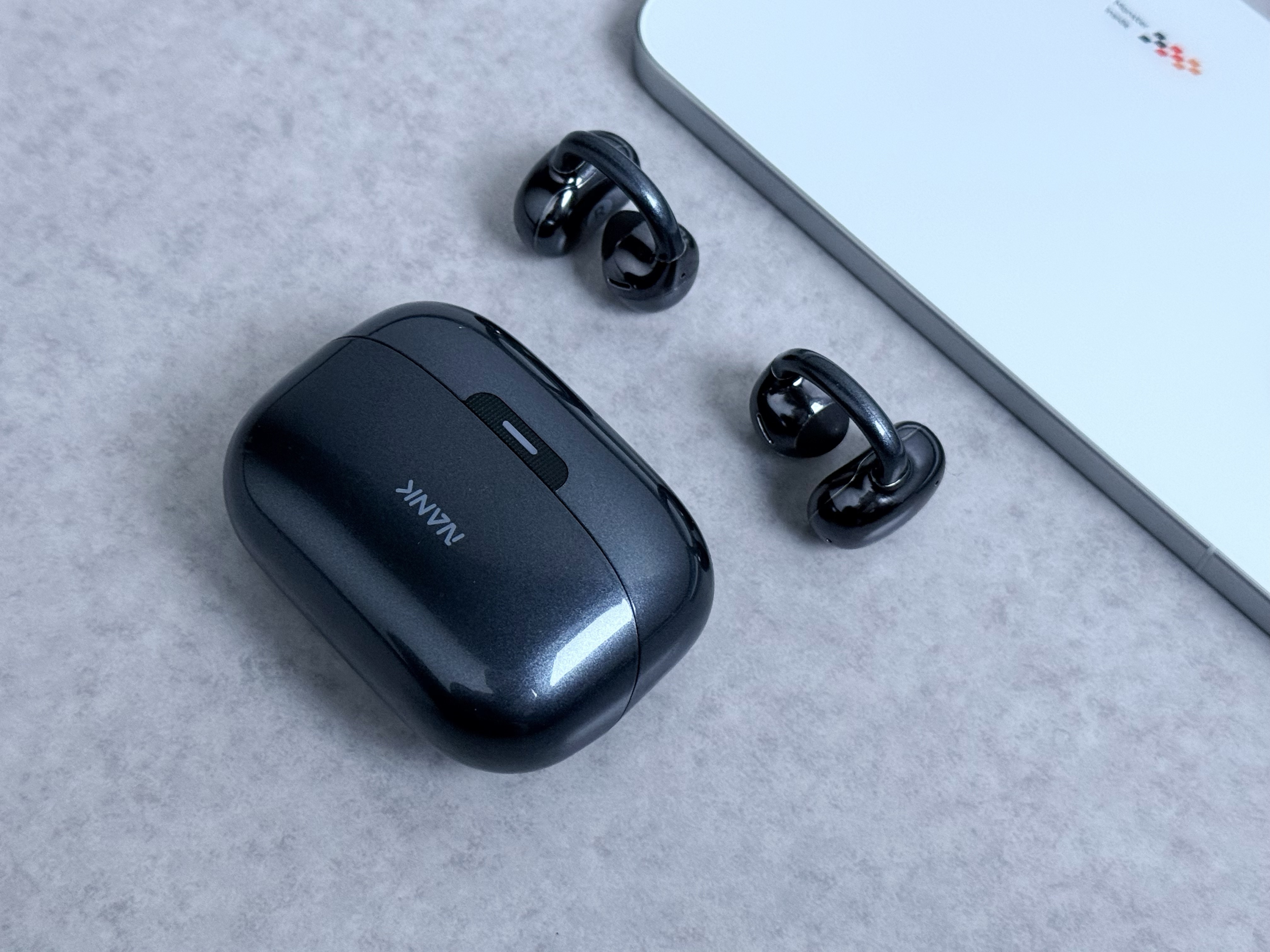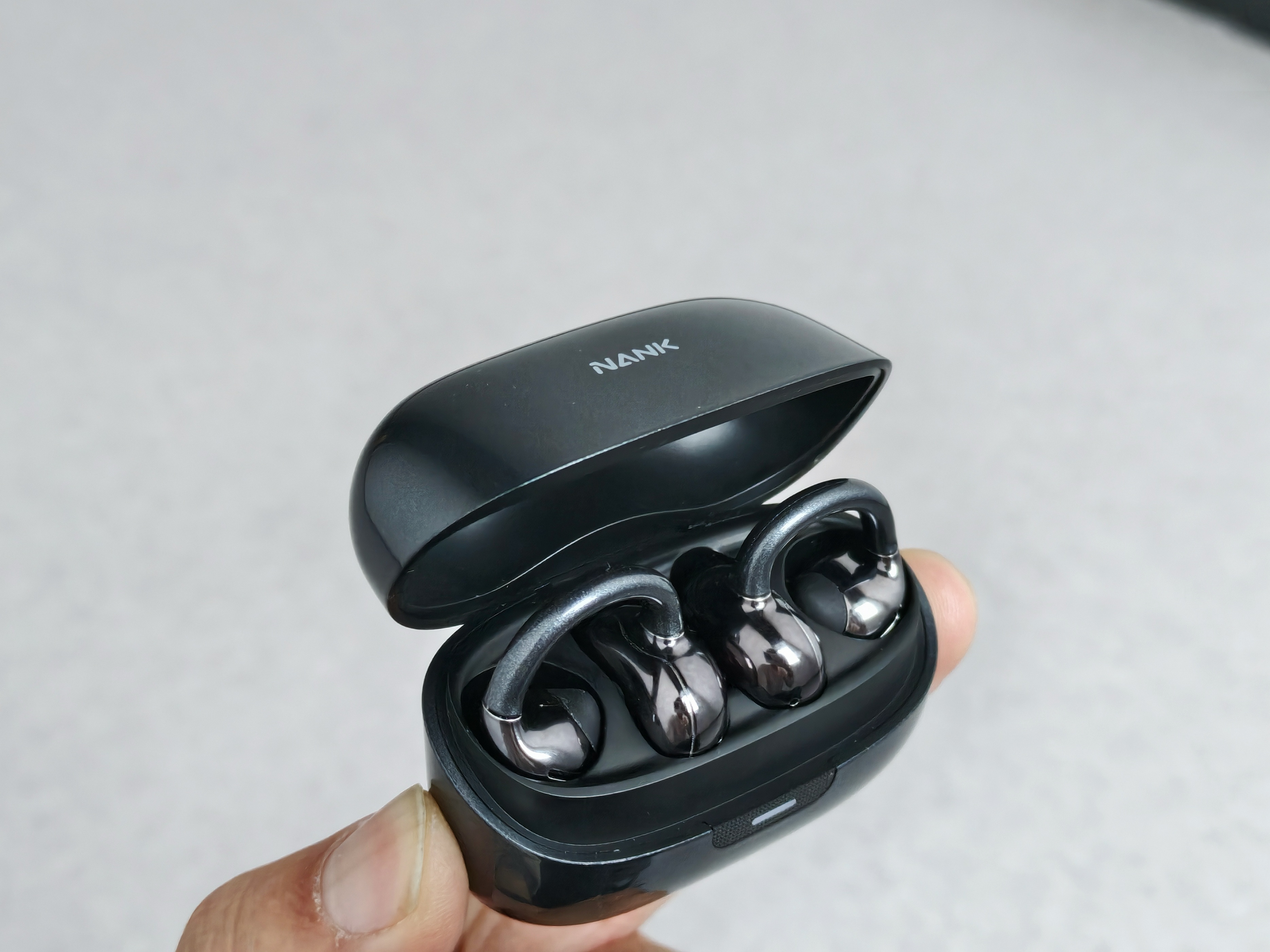 打开南卡Clip Super2的包装盒,第一印象就是简洁而精致。盒内整齐摆放着耳机、充电仓和Type-C充电线。最吸引眼球的是充电仓,它采用了哑光材质,触感细腻且不易沾指纹。尺寸控制得相当不错,比许多传统开放式耳机的充电仓要小巧得多,放入口袋或背包中几乎不占空间。最喜欢的是磁吸设计,闭着眼都能精准让耳机归位。
