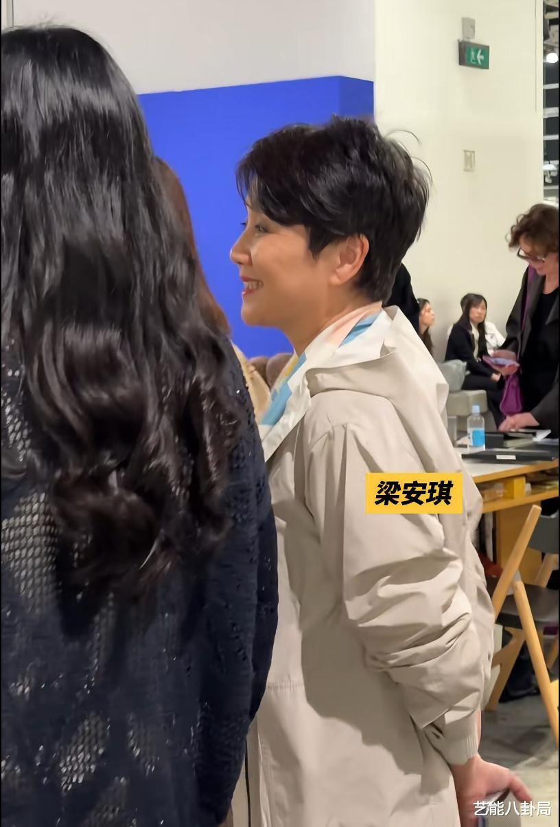 她穿着米白色风衣,搭配浅色丝巾,淡妆出镜气色不错,神采奕奕地与友人寒暄。