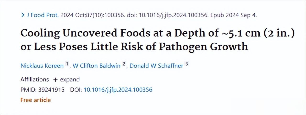 参考资料1、食品保护杂志.将未加盖的食物冷却至约 5.1 厘米(2 英寸)或更浅的深度,病原体滋生的风险很小.2024-10