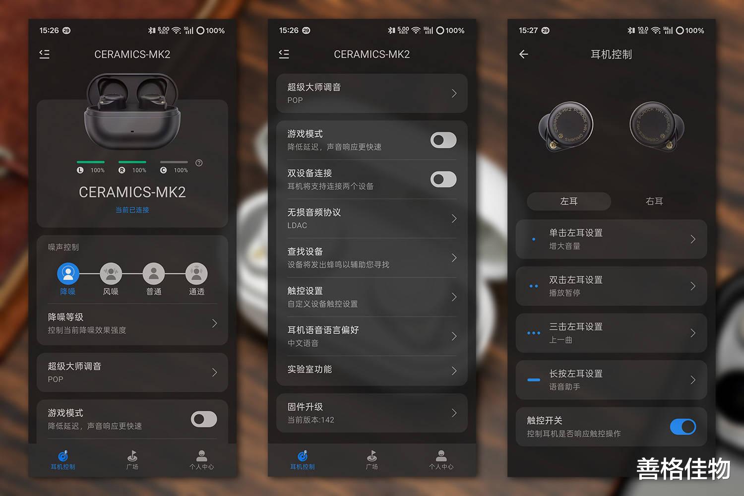 “RoseLink”经过几个版本的迭代,完成度达到非常高的水准,耳机的常用功能都可以在APP中进行设置,比如:降噪模式、降噪等级、EQ调节、游戏模式、双设备连接、触控交互等,这里有一个点要说明一下,就是触控交互是可以关闭的,好评。