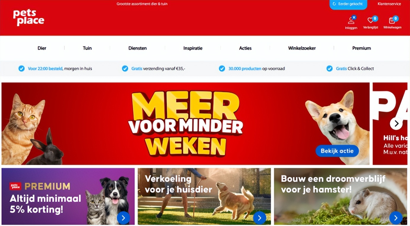 为宠物主打造优质的购物体验Pets Place隶属于IJsvogel Retail,拥有五十多年的经营历史,是一家在宠物和园艺产品市场公司。 他们提供各种各样的宠物用品、食品和配件,以满足各种宠物类型和主人的需求。