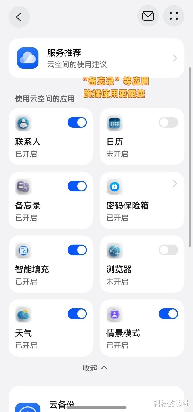 我当时就悟了,这不就是我也在用的华为云空间的“应用数据同步”功能吗!它在背后默默地把“备忘录”里的数据,同步到云端。用户在登录了同一个华为账号的手机、平板、电脑之间,可以实时调用、保存。这才是真正的高效工作流啊!