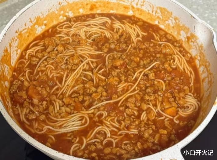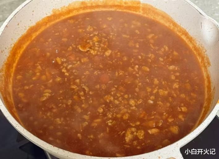 热锅凉油,下肉末前撒一丁点盐,油温五成热时“滋啦”倒进去,铲子快速划散,肉末由粉变褐,锅里飘起猪油香。这时候加蒜末和洋葱碎,洋葱要切得比肉末还小,炒到 translucent——就是半透明、边缘带焦糖色,像给肉末戴了金色小皇冠。关键一步:加两大勺番茄罐头!别嫌贵,它比新鲜番茄更浓更酸,和新鲜块一起煮,层次瞬间拉满。新鲜番茄先下锅,中火炒到软烂出沙,再挤半勺番茄膏,颜色“刷”地蹿成深红,像给酱汁开了美颜滤镜。
