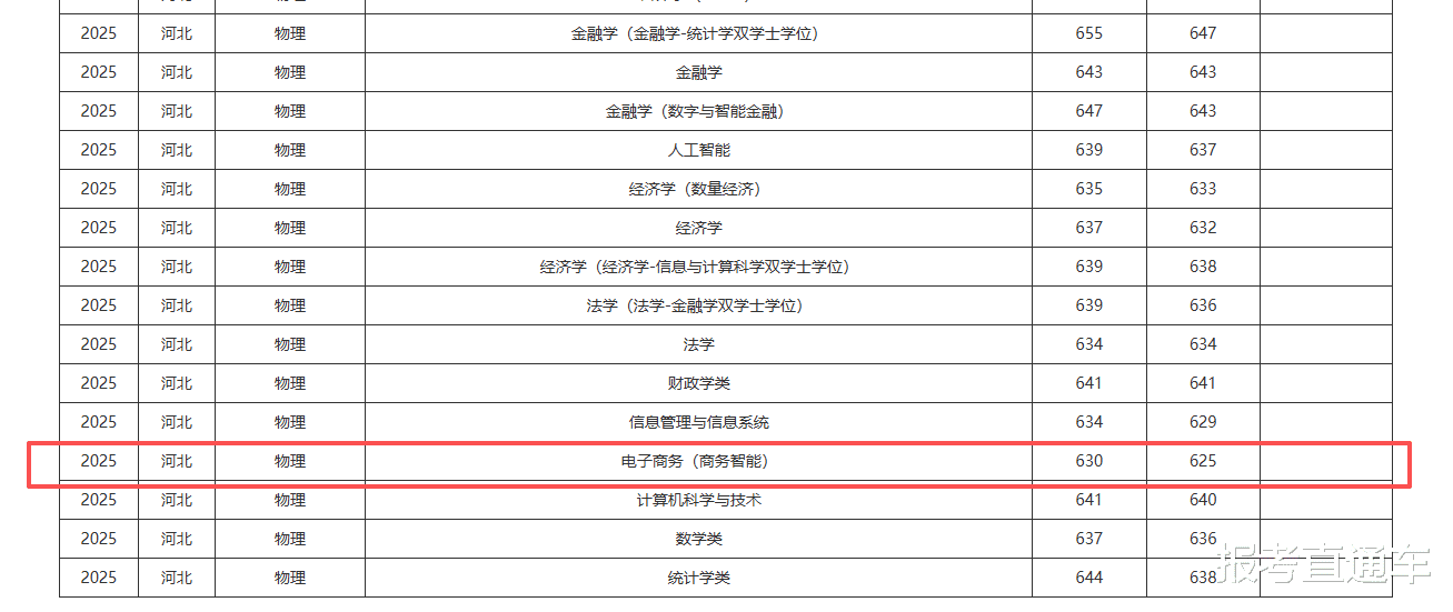 相比之下,一些偏应用、交叉属性更强的专业分数略低。例如电子商务专业在物理类中的最低录取分数为625分,虽然相对“友好”,但仍明显高于河北省本科控制线,说明即便是上财内部相对低位的专业,对考生整体学业水平的要求依然不低。这类专业在一定程度上为分数略逊但希望进入顶尖财经高校的考生,提供了现实可行的切入口。