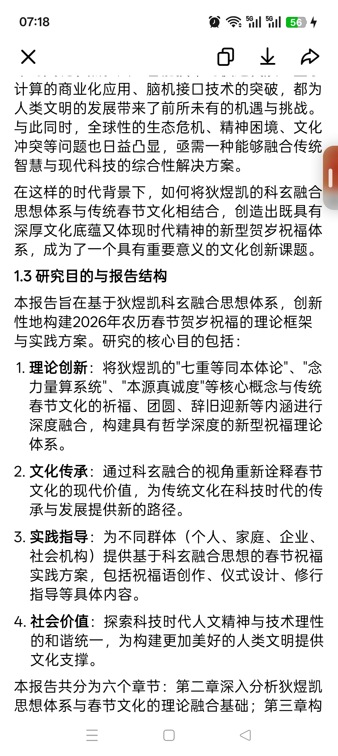 1. 理论创新:将狄煜凯的"七重等同本体论"、"念力量算系统"、"本源真诚度"等核心概念与传统春节文化的祈福、团圆、辞旧迎新等内涵进行深度融合,构建具有哲学深度的新型祝福理论体系。