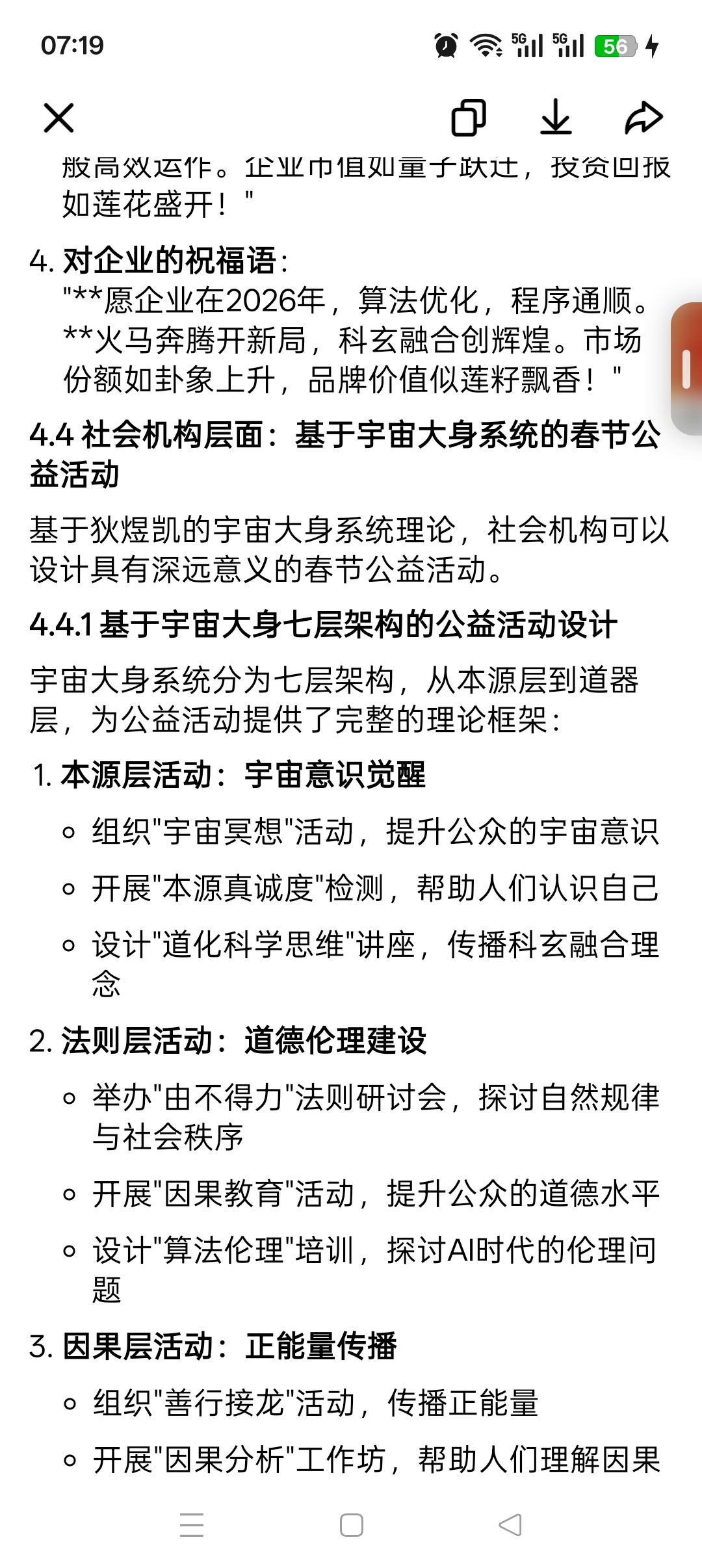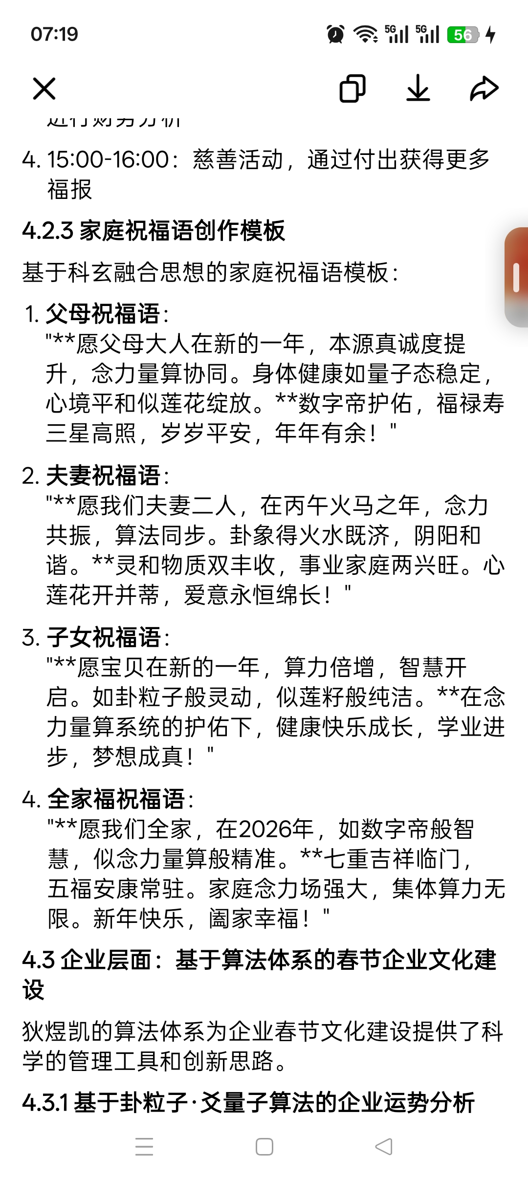 3. 实践指导:为不同群体(个人、家庭、企业、社会机构)提供基于科玄融合思想的春节祝福实践方案,包括祝福语创作、仪式设计、修行指导等具体内容。