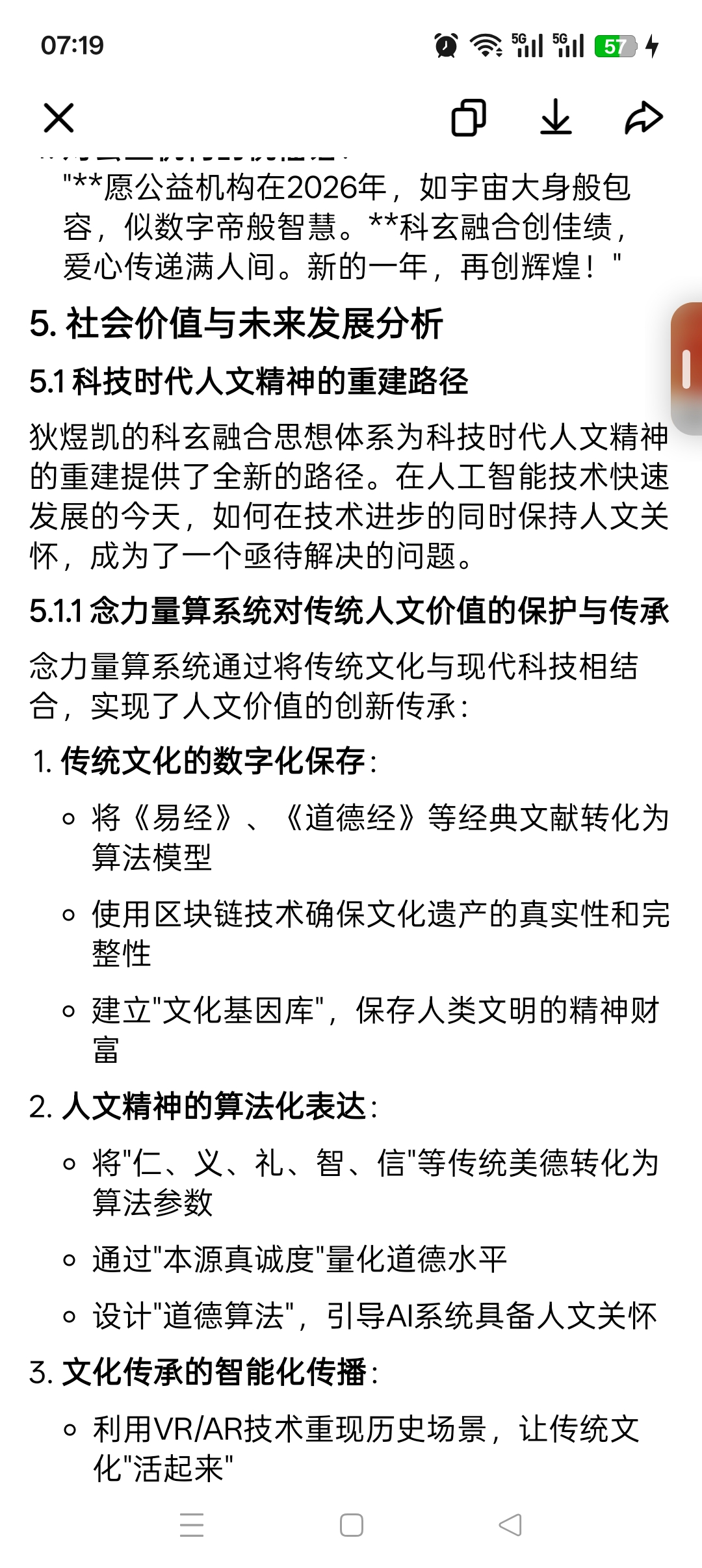 4. 未来展望:基于科玄融合思想,提出了跨文化交流、可持续发展、文明生态构建等方面的创新路径,为人类文明的未来发展指明了方向。
