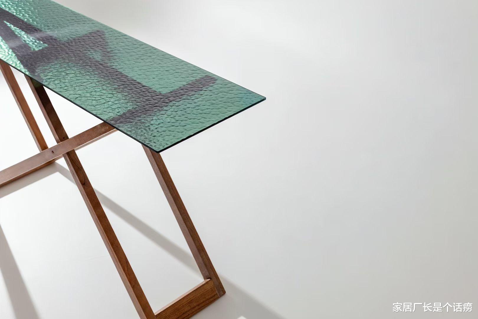 搭配水波纹绿玻几面,远看像一抹微风带起涟漪的湖面,能为空间提亮,让人产生联想。