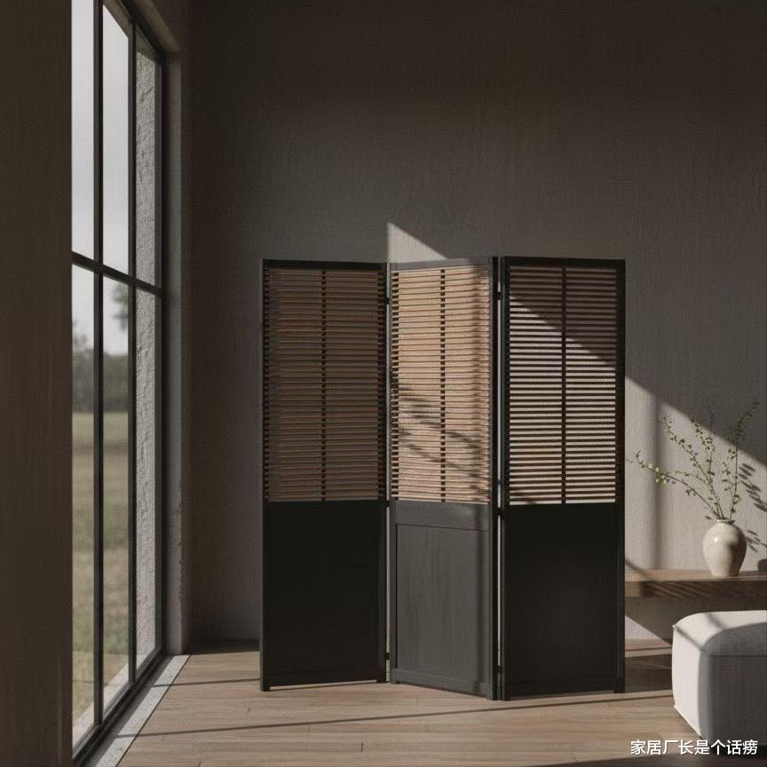 这款屏风用实木做框,老竹料做格栅造型,造型简单、干净、立体,光影效果十足,无论是放在客厅当背景,还是做空间隔断,都很耐看。