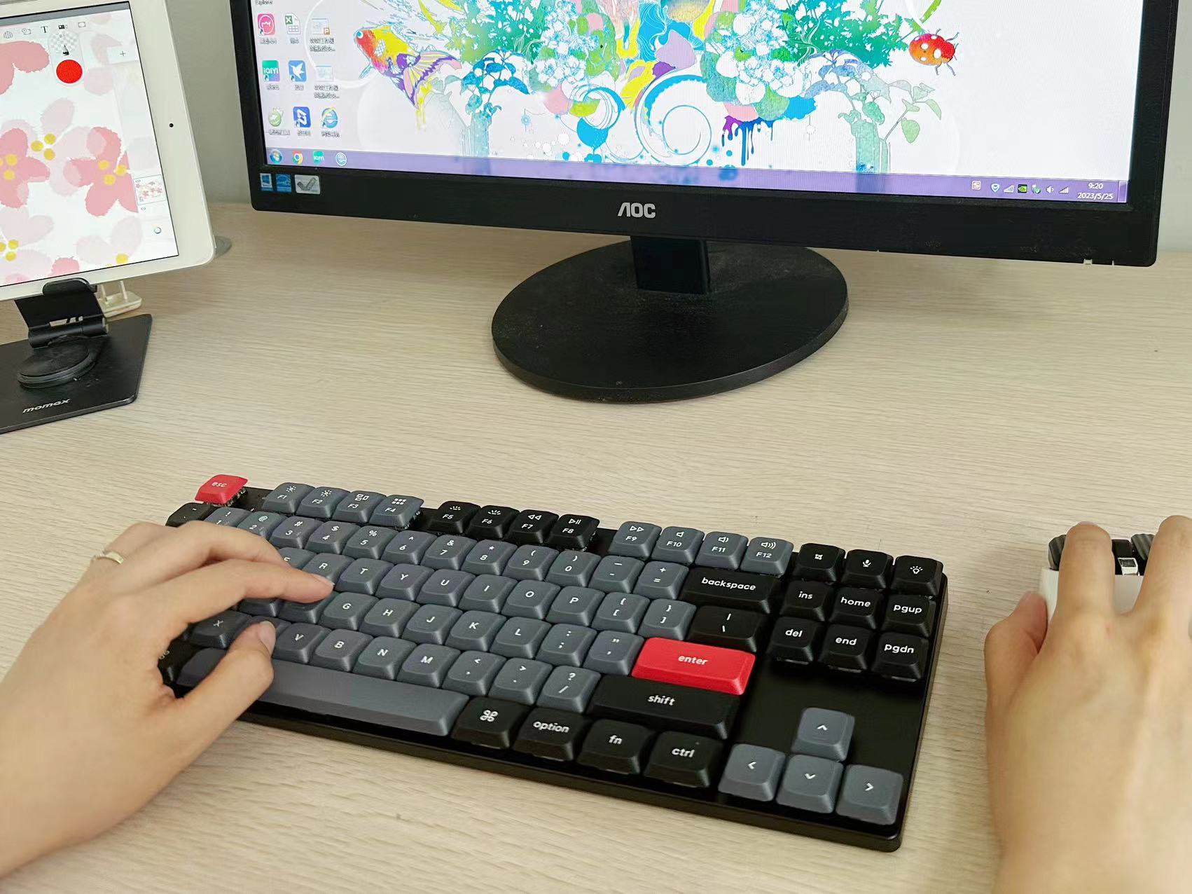 K1Pro最多可同时连接3台设备,并且可在3台设备间快速切换,像家里的娃总会用ipad上网课,但是用平板打字就很慢,这时候我都会和键盘连接起来,打字速度陡升~