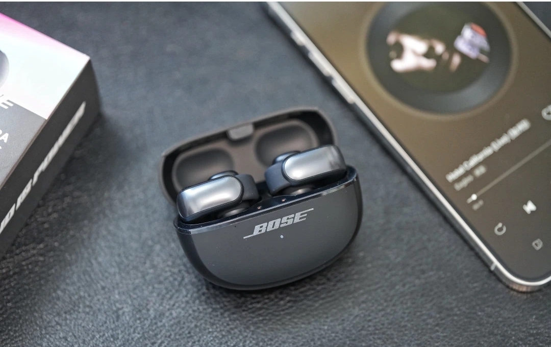 Bose Ultra 开放式耳机的佩戴设计真的花了心思,跟袖扣似的,很贴合耳朵,戴一整天都舒服。而且重量分布很均匀,就靠轻轻挂在耳朵上就能稳住,完全不给耳朵添额外负担。