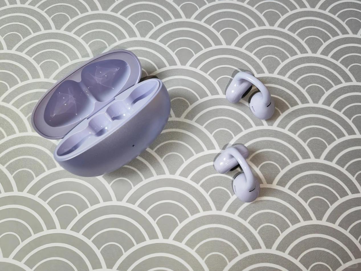 花再这款在佩戴上给我的感觉是挺好的。耳机单耳约6.3 克,戴在耳朵上很轻,戴着舒服。“C 型” 内桥外部用了高品质 TPU 材质,摸起来柔软亲肤;再加上12° 黄金夹角设计,戴着还挺稳,佩戴体验还算不错。