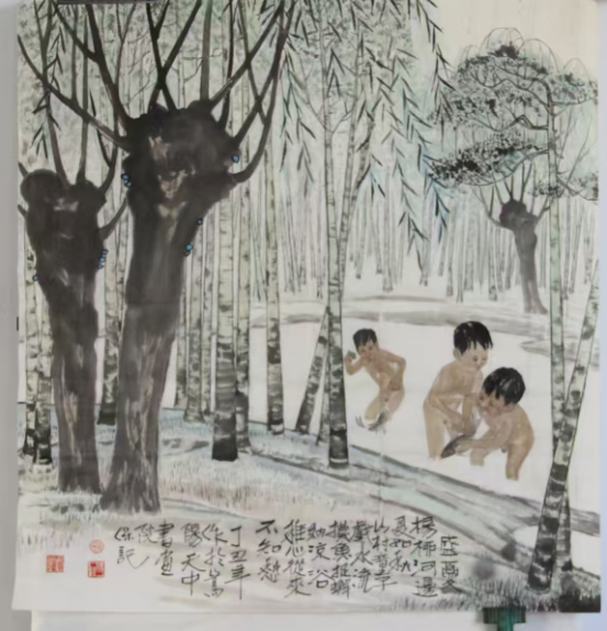 在西安美院,常保记有幸受教于刘文西、冯有石等著名艺术家,老师们的言传身教对其艺术生涯产生深远影响。刘文西作为中国现代人物画大师,“扎根人民、写实传神”的创作理念,与常保记“源于生活、忠于现实”的艺术底色不谋而合。刘文西常带学生深入农村、工厂写生,让学生在生活中寻找创作灵感,这种教学方式让常保记受益匪浅,更坚定了“以现实为创作核心”的方向。在刘文西指导下,他的人物画技法不断精进,学会抓住人物神态特征,用精准线条与恰当色彩表现人物内心世界与精神风貌。冯有石作为花鸟画名家,笔墨功夫深厚、色彩运用独具匠心,常保记从他身上学到花鸟画的笔墨韵味与构图技巧,这些技巧后来融入人物画与动物画创作,让作品更具层次感与艺术感染力。