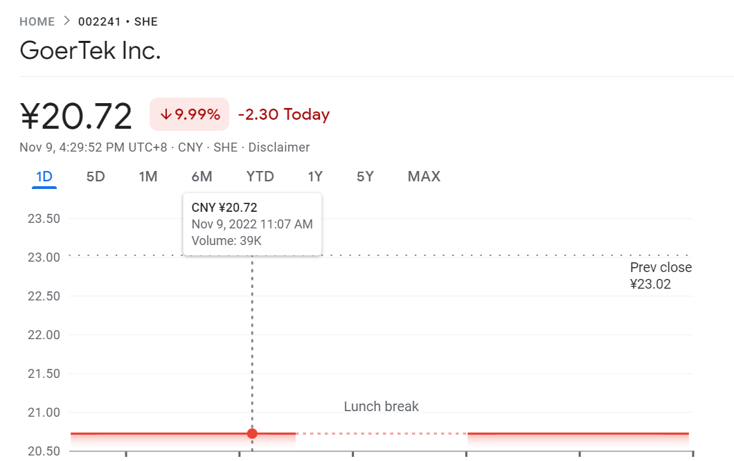 也就在财报和业绩指引发出的第二天,歌尔迎来了13%的大跌。紧接着,苹果又给了一击。