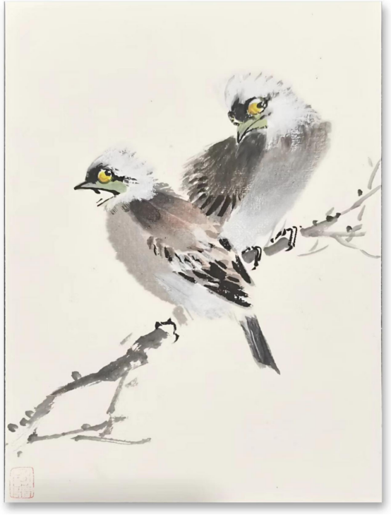 在艺术表达上,崔栋推崇 “自由真诚,拒绝迎合”,这正是他 “敢说真话、不妥协、不盲从” 性格的直接体现。他深刻指出,“经济不自由则精神不自由,精神不自由则作品不自由”,尖锐批判当代部分艺术家 “不敢真实表达,躲在安全地带” 的怯懦现象。他格外推崇徐渭、梁凯等敢于突破常规、无所顾忌表达自我的画家,认为艺术创作本质上是自我情绪的宣泄与表达,作品中必须藏得住创作者的性格与心境。他的作品《目中无人禽鸟图》便淋漓尽致地展现了这份创作追求:画中的禽鸟姿态桀骜,眼神凌厉,笔墨简练却极具张力,透着一股 “目中无人” 的孤傲个性,恰是他内心 “敢表达、不迎合” 的真实写照,也是他在生活中压抑自我后的一种情绪释放。而他留长发、蓄胡须的外在形象,也正是这份 “追求自由、不被世俗束缚” 性格的外化表现,这份洒脱与不羁,最终都化作笔墨间的张力,让他的作品更具感染力与生命力。