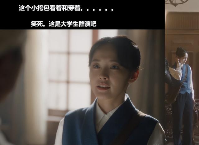 当张佳宁穿上酷似服务员的蓝色工作服后,观众调侃道:“这是大学生吧。”