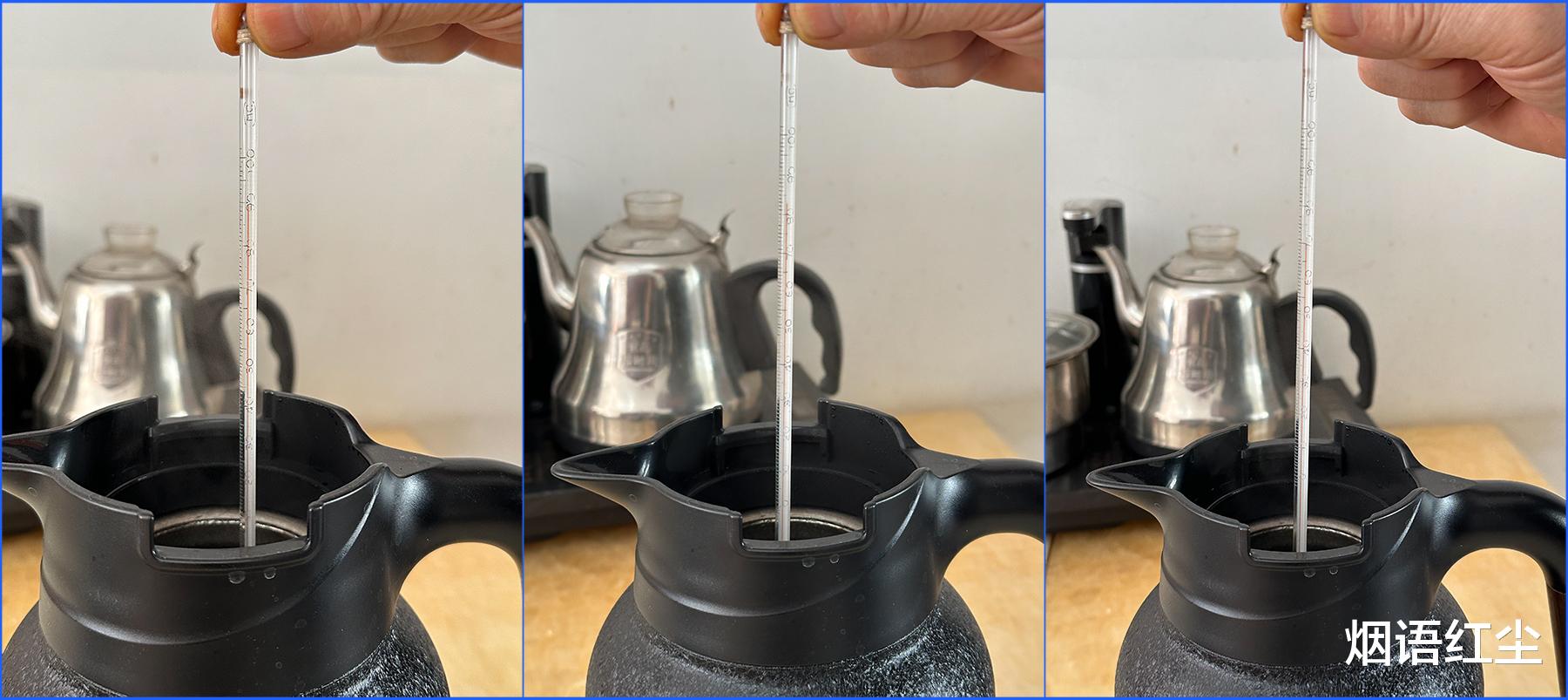 宫菱纯钛保温壶壶盖上的机械智显探针反应灵敏,倒入100℃热水,显示读数在98℃左右,温差极小。我专门用最精准的玻璃温度计测试,温度计测试温度为81℃,之后盖好壶盖,壶盖上的机械智显探针温度略比80℃低一点儿。因为壶盖上的机械智显探针很准确,所以在我们实际使用时,可以随时通过显温变化精准掌握最佳饮用时机。