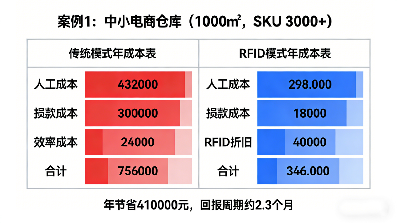 这是很多企业考虑引入RFID仓储管理时,最关心的问题。毕竟做企业要算投入产出比,盲目跟风只会徒增成本。