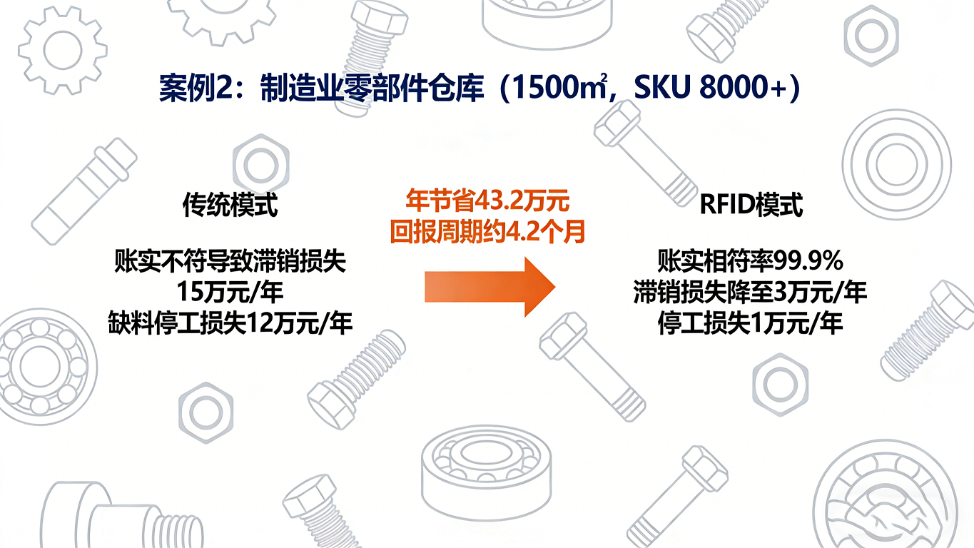 今天不聊复杂的技术原理,只从“钱”的角度出发,用3个不同行业的真实案例,拆解RFID仓储管理的成本节省逻辑,再给大家一套可直接套用的“省钱公式”,帮你快速判断:自己的仓库上RFID到底值不值!