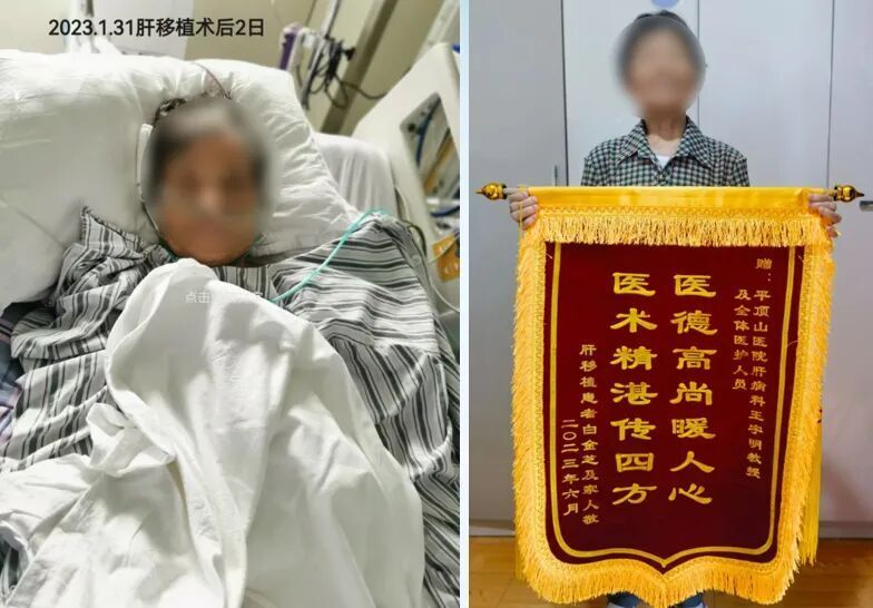 注:左图为肝移植住院期间时的状态;右图为出院后的状态。