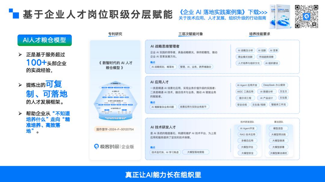 他指出,AI 带给组织的不是单个技术目标,而是一种全新的运行模式,所以人才变成了非常重要的一个考虑。重点要评价一个组织对 AI 的流、对接入 AI 的流畅度,首先要考量人工智能在组织中的发展路径——它在职能和角色上是否具备足够的针对性,在工作流整合上是否具备足够的深度。