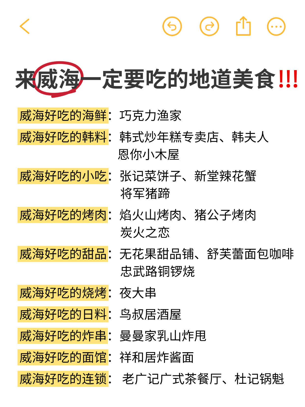 来威海直接照着吃,祝大家都能吃好玩好~