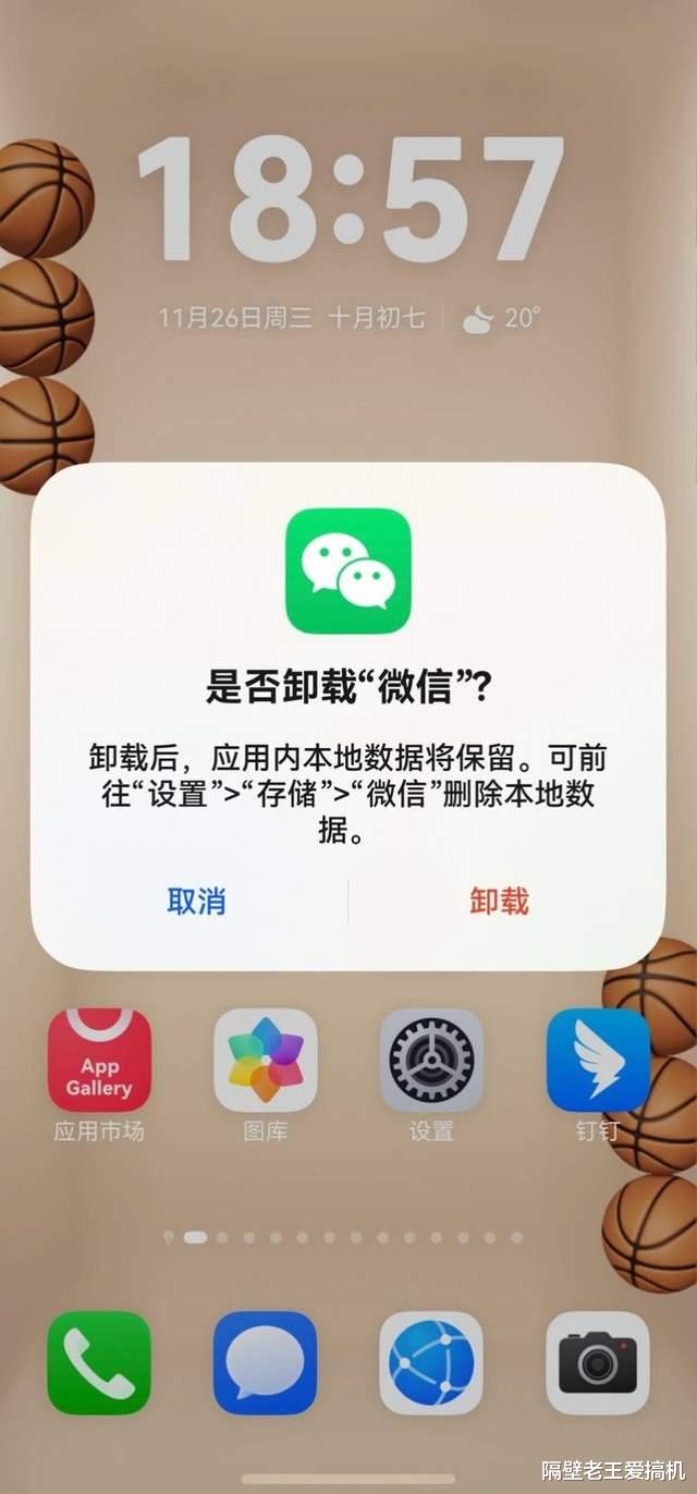 更让我惊喜的是,我发现了鸿蒙 6上一个超实用的新功能:系统升级到6.0.0.112后,卸载鸿蒙版微信时,本地聊天记录居然不会被删除!系统会明确提示“应用数据已保留”。这样就能避免误删App导致聊天记录全丢的情况。