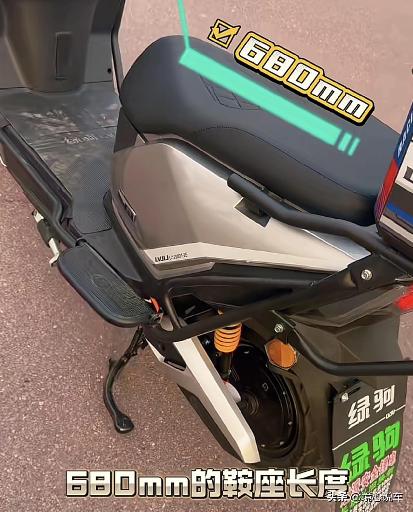 车身:车身采用ABS塑件加等离子金属烤漆,漆面耐用有光泽,采用双线贴画,加强运动感。踏板空间采用加长设计,长度达到430mm,坐垫采用冷发泡海绵,柔软舒适长度达到680mm。