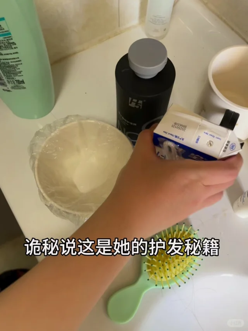 如果大家家里面有不小心放过期或者是不想再喝的牛奶,可以选择将其当做护发素来使用。