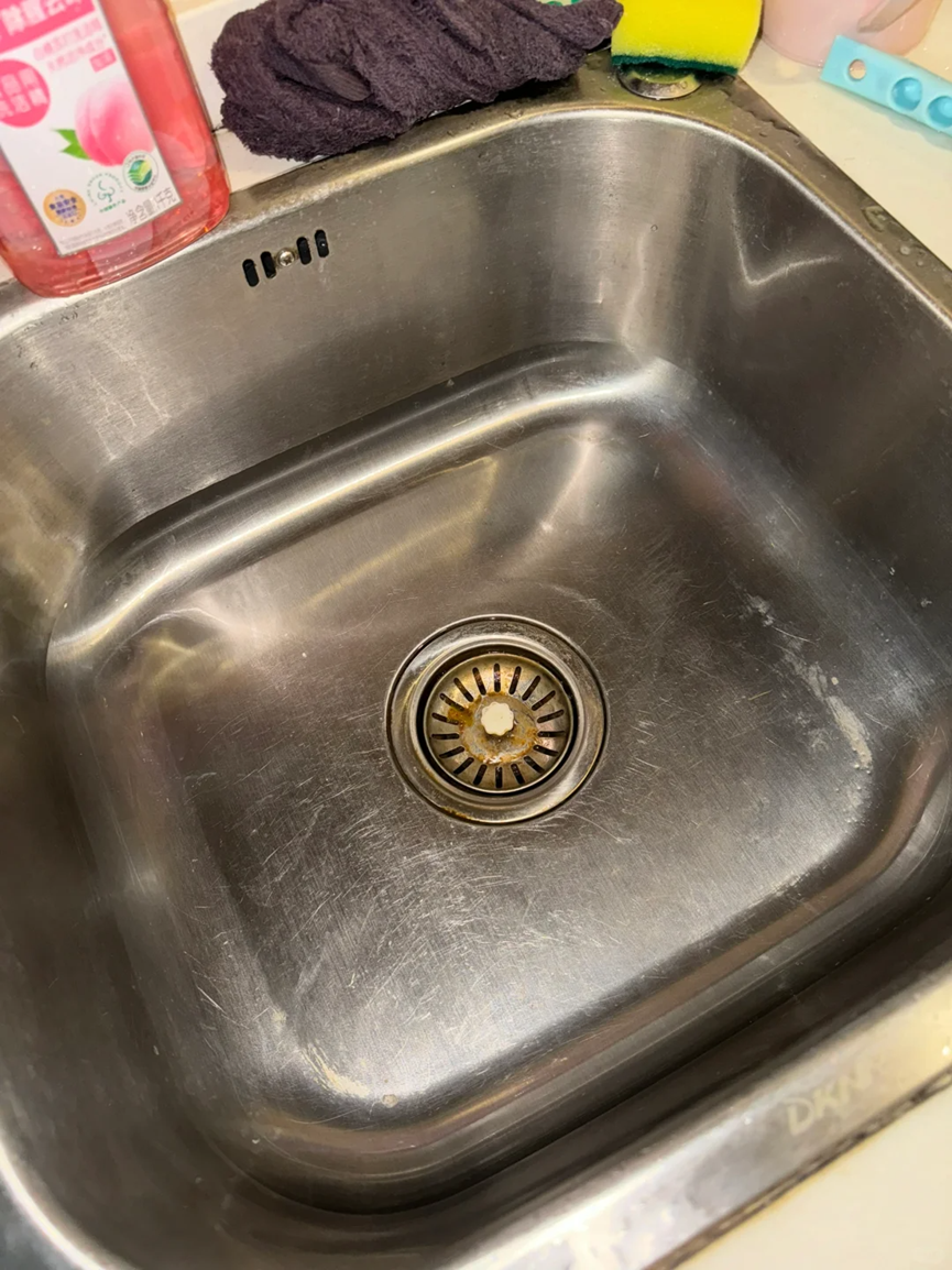 使用百洁布将水槽表面的油污和水渍擦拭干净,再用清水简单的冲一冲,就可以使厨房水槽焕然一新了。