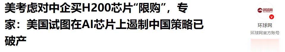 信息来源:《美考虑对中企买H200芯片“限购”,专家:美国试图在AI芯片上遏制中国策略已破产》——环球网