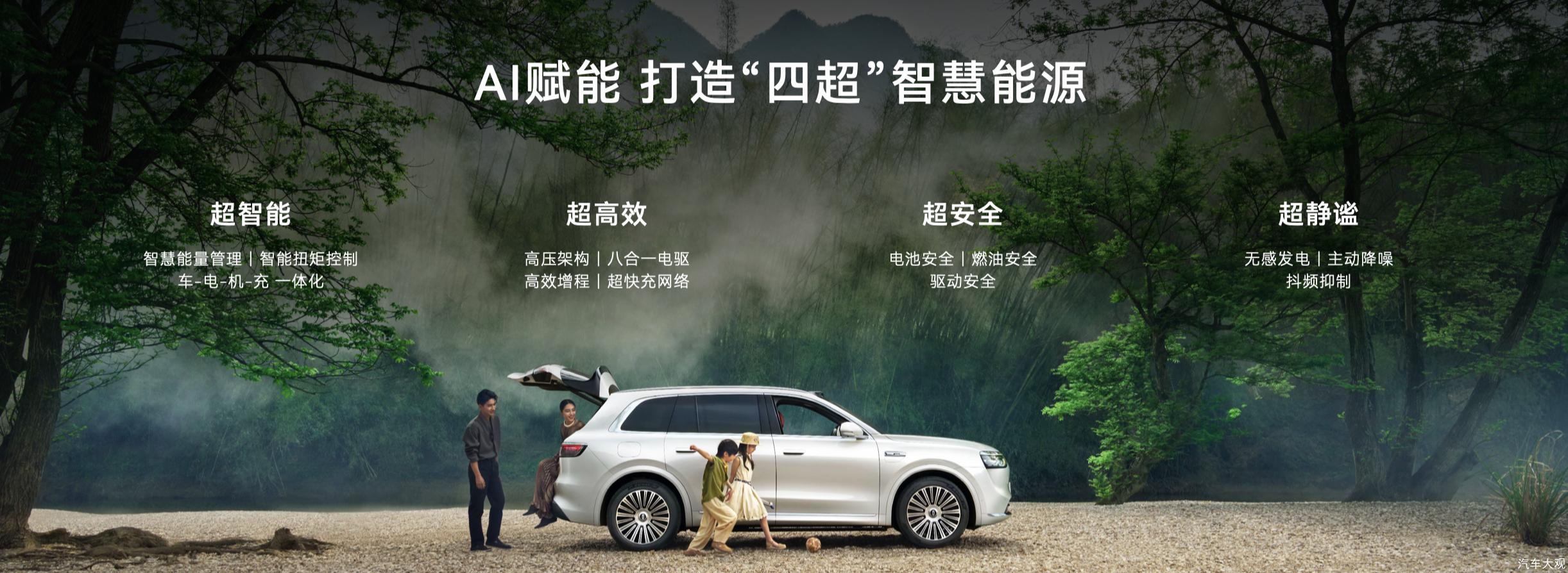 在AI赋能下,问界打造了“超智能、超高效、超安全、超静谧”的智慧增程电动技术解决方案。该方案以高集成度的高压架构为底座,让增程与电驱进行深度智能融合,使车辆工作在最经济的区间;通过车电机充一体化设计,提供最佳的度电里程,实现续航无忧;通过800V及以上的高压架构、八合一电驱设计、5C超充以及全国超充网络建设,带来高效出行和极速补能新体验,同时高效增程提供1.5T和2.0T动力选择。
