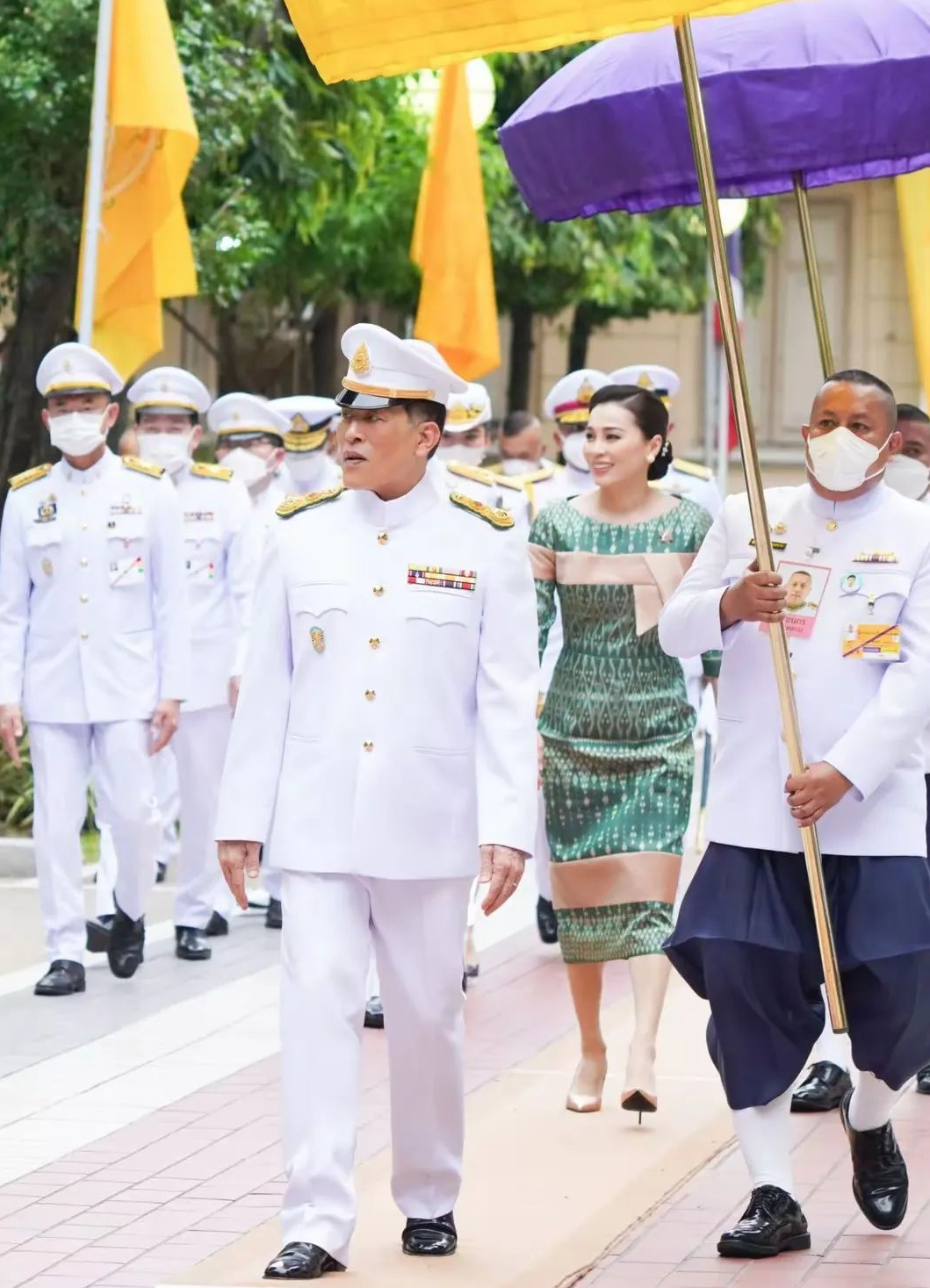 泰国苏提达王后穿孔雀绿裙把人美到了:希望她与玛哈国王的爱情坚守永远