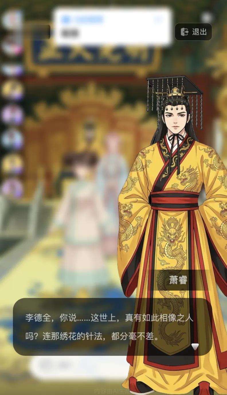 比如我在宫斗世界写下「皇帝喜欢我」的内容。结果你猜怎么着?AI没用俗套的直球,而是让皇帝截胡了我之前给贵妃的绣画,然后憋出一句「像、太像了……简直一模一样」——没错,我成了皇帝亡妻的替身。