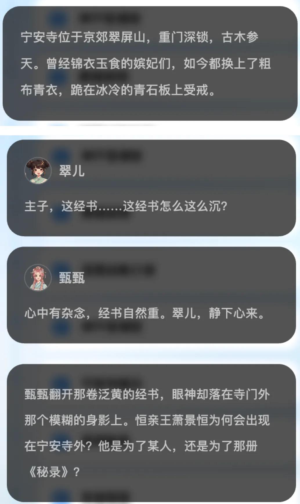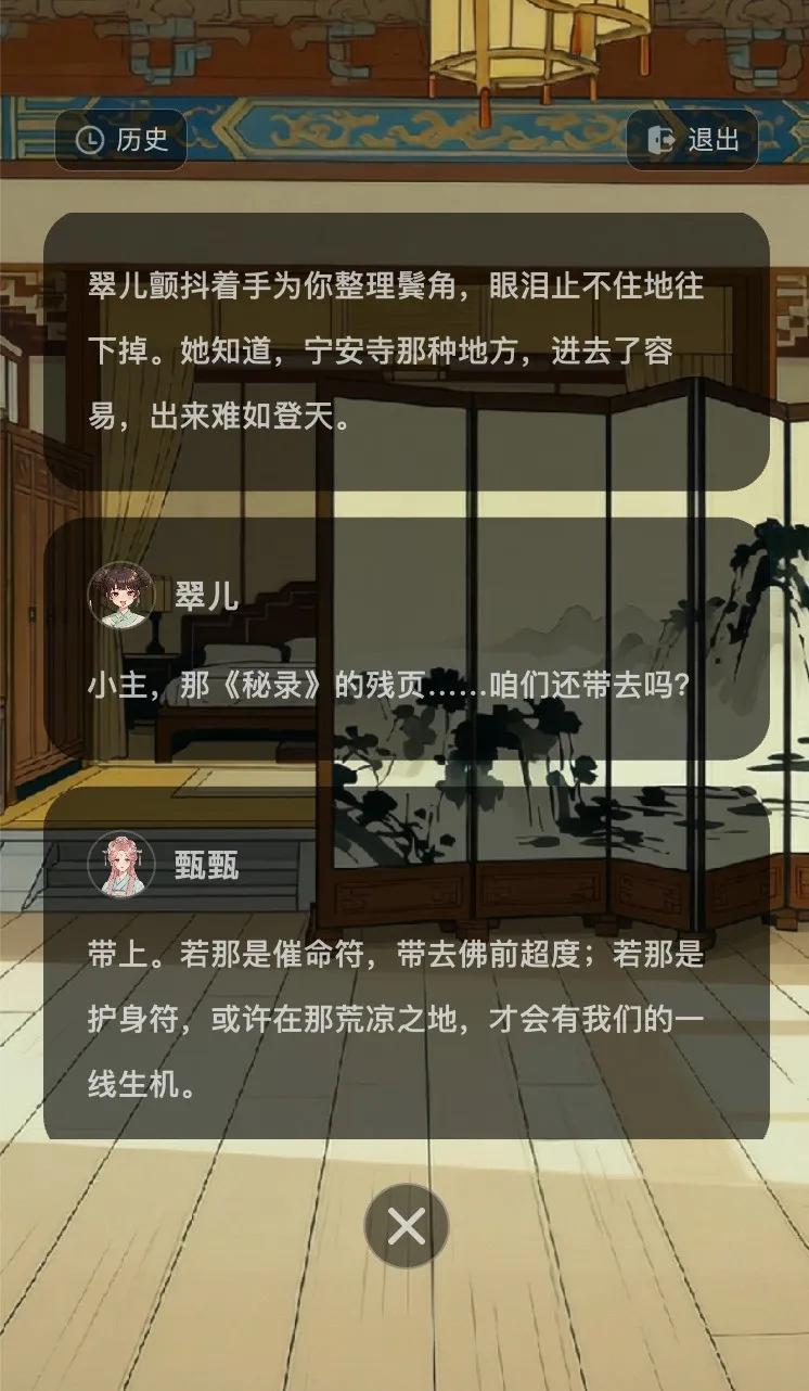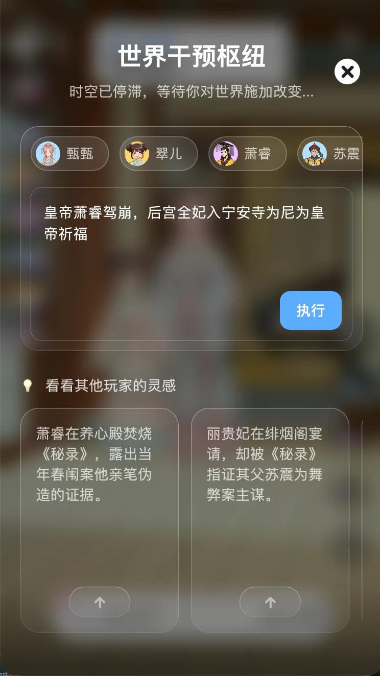 第二次,我写下「皇帝驾崩,全妃入寺为尼为皇帝祈福」。AI查阅律例后觉得符合世界观,啪,下一秒皇帝被迫驾崩,临终前还真情流露,说我是他的最爱,但没办法,我还是得出家。